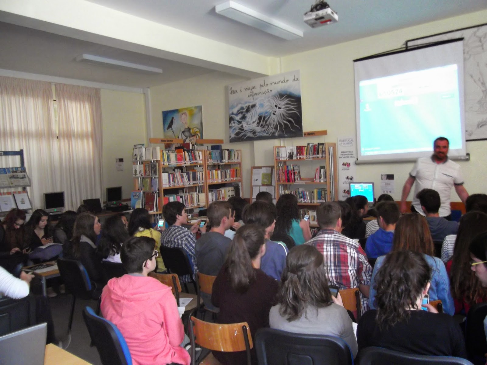 Decorreram no dia 14 de maio sessões sobre "Pesquisa de informação e aplicação de jogos de cultura geral (Quiz) em telemóveis dinamizadas por Pedro Rafael Gomes, coordenador interconcelhio da Rede de Bibliotecas Escolares e destinadas a todos os alunos do ensino secundário deste Agrupamento. Na escola do 1.º ciclo houve "Histórias com tapete".